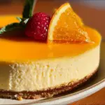 A creamy and smooth cheesecake infused with fresh orange juice and zest, offering a delightful twist on the classic dessert.